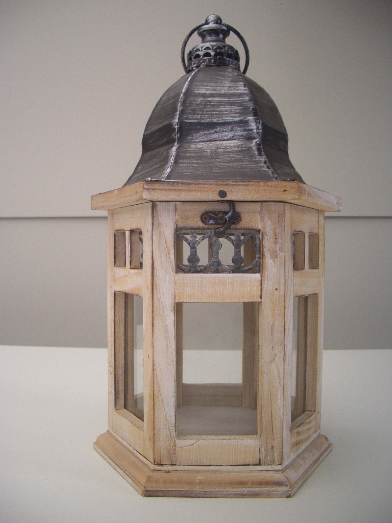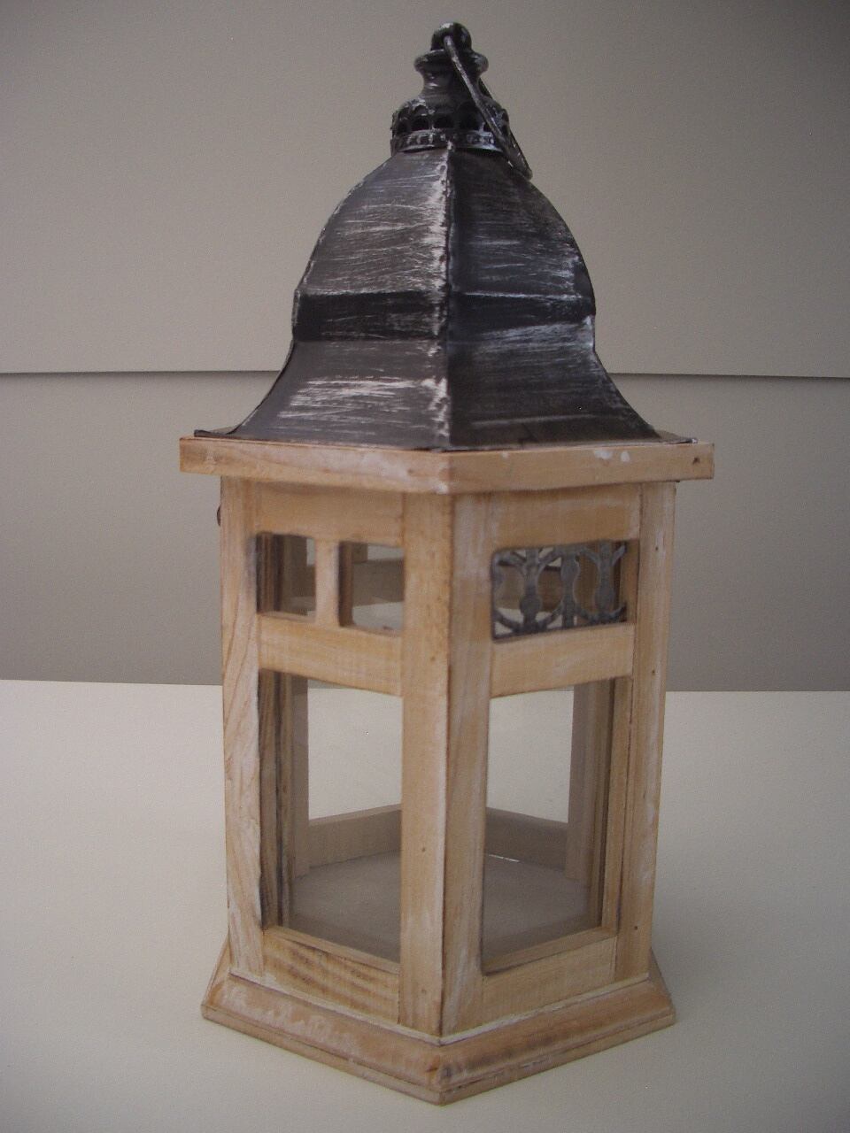 シャビーホワイトウッドの六角形ドーム型ランタン風置物です。