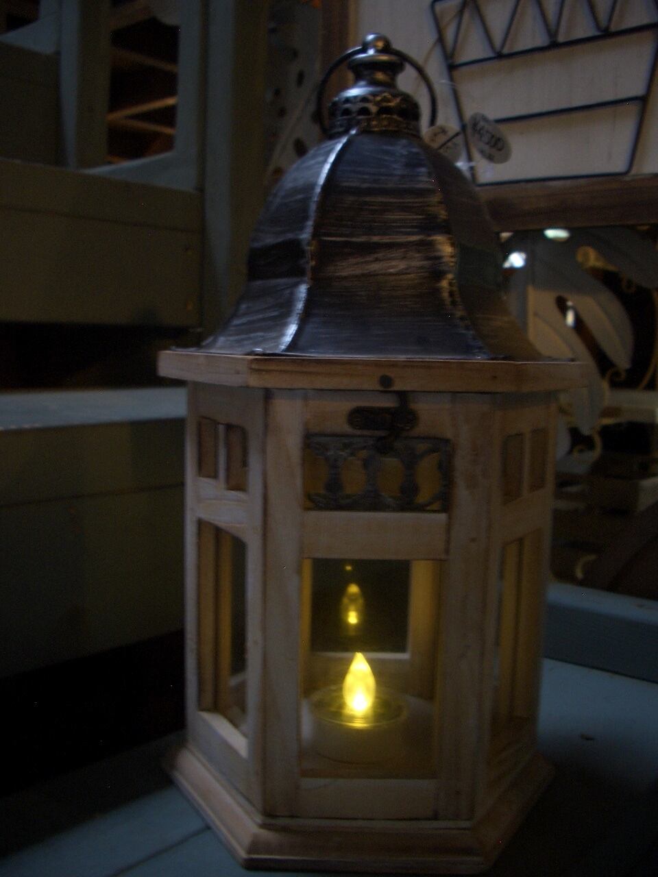 アイアン性の六角形ドーム部分は開閉でき、LEDキャンドルやフェイクグリーン、お気に入りの小物などを入れられます。