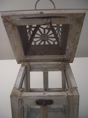 透かしの模様が綺麗なランタンの上部はマットペイントのアイアン製で