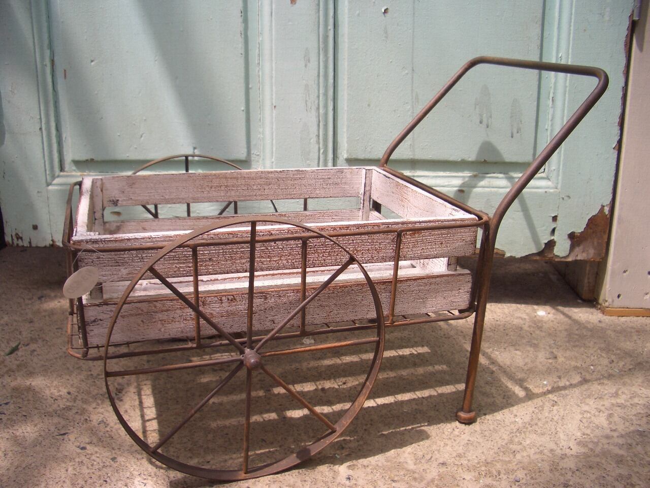 商品名:フラワーワゴン 二輪 木箱 アンティーク
