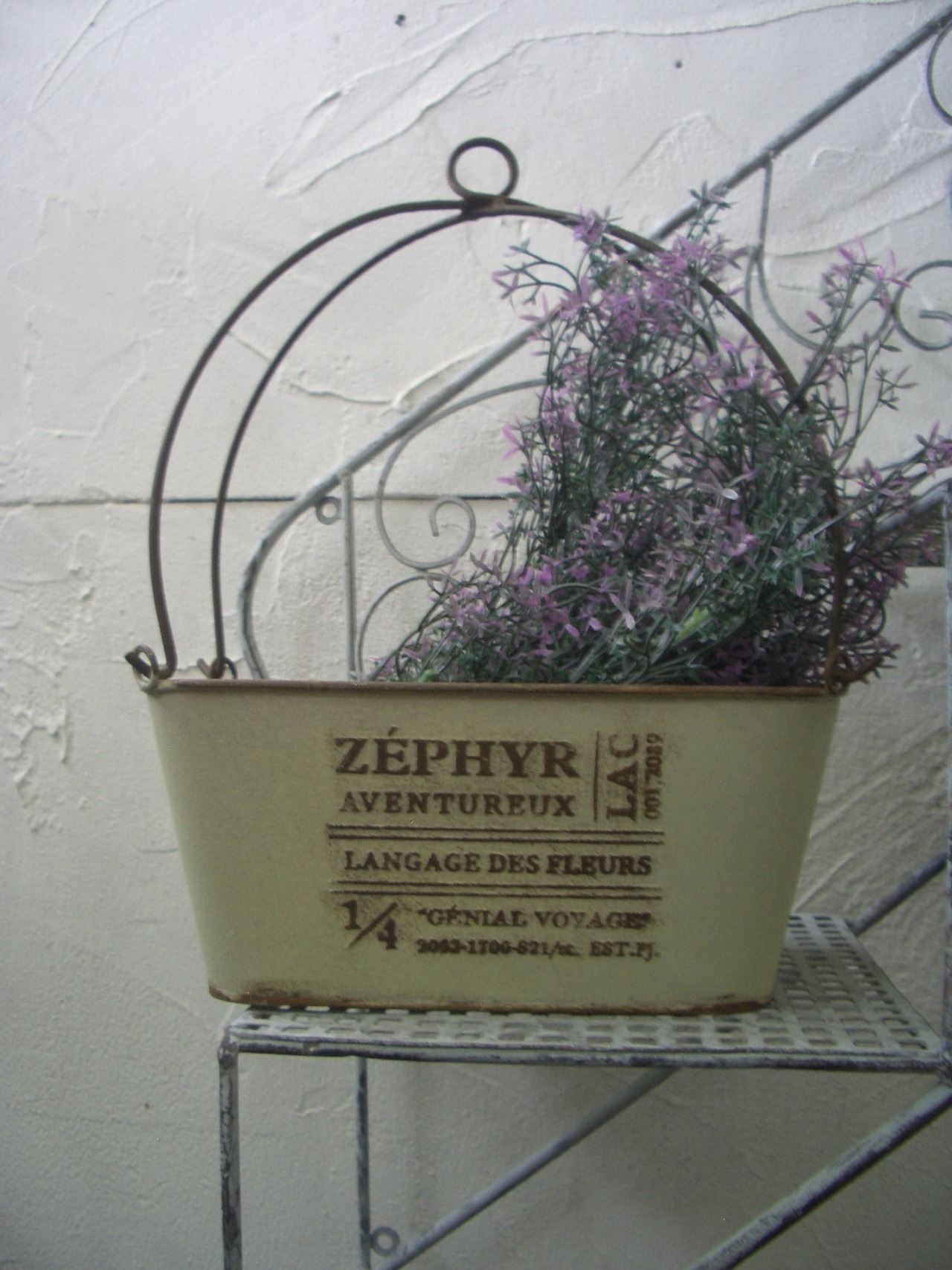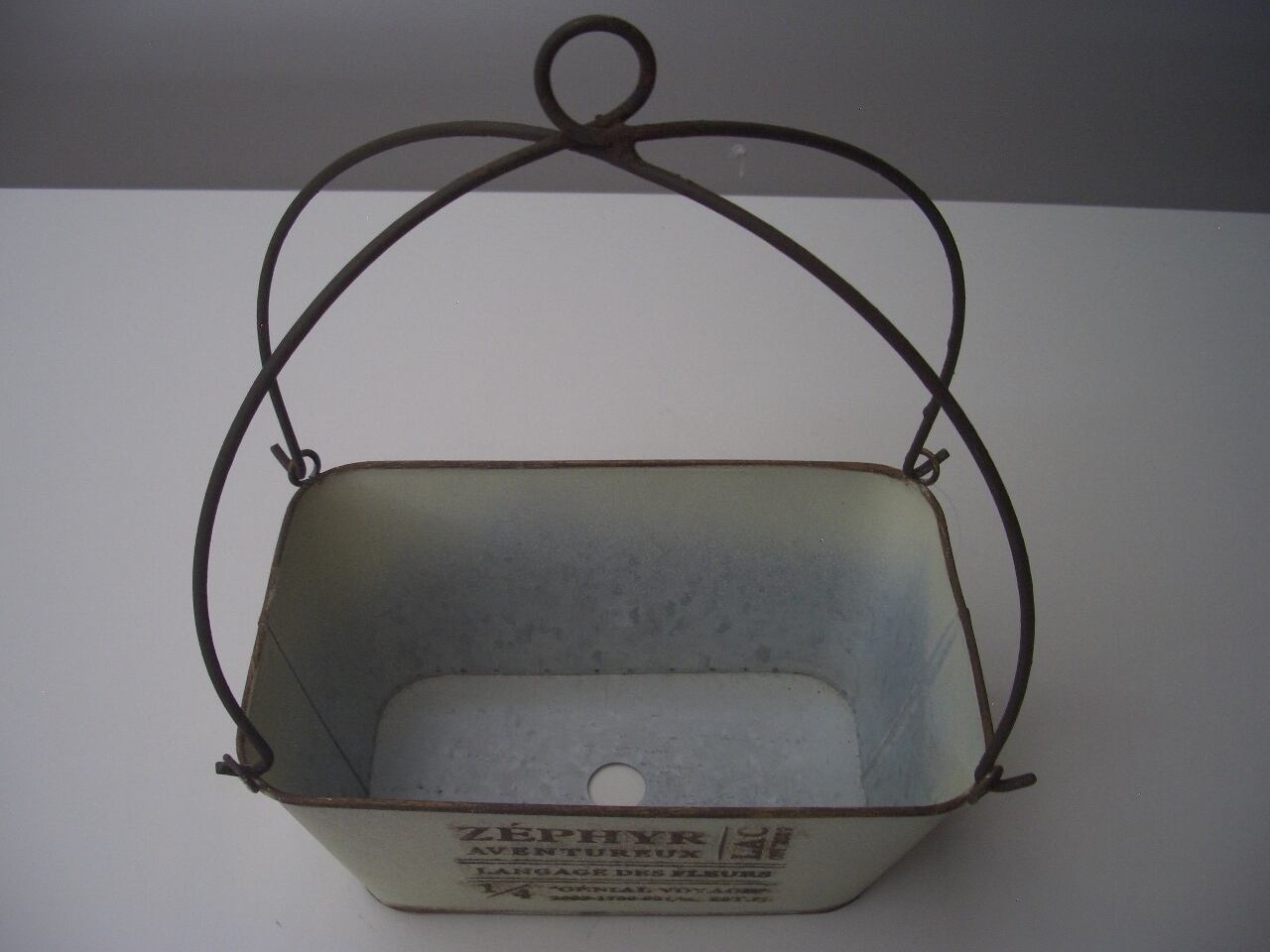 商品名:ハンギングスクエア ブリキ鉢 アンティーク
