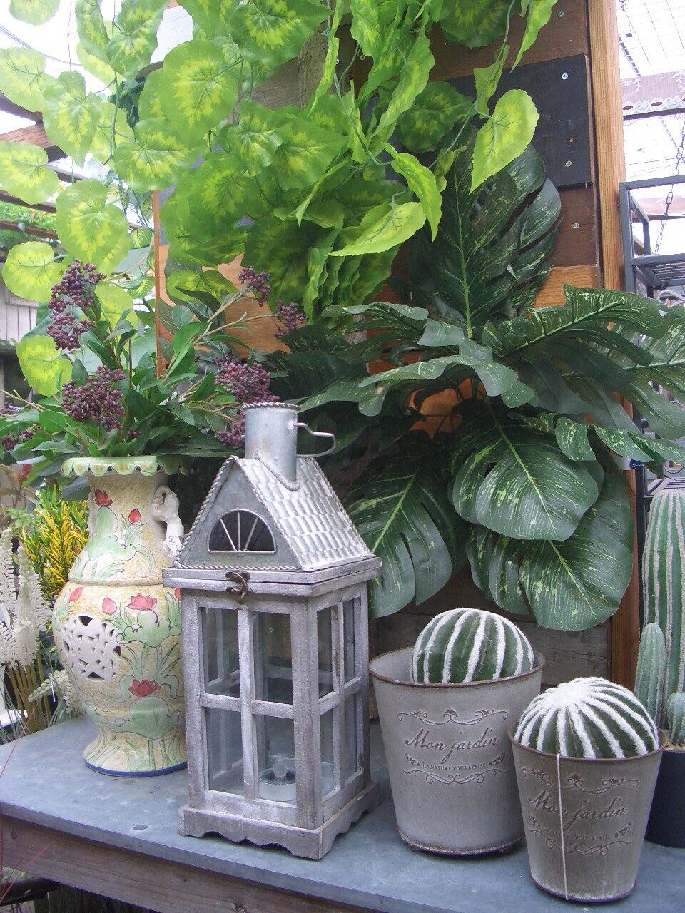 屋根部分が開閉でき、中にLEDキャンドルやフェイクグリーン、小物等を入れて飾れます。上部のフックで吊り下げ、ハンギングディスプレイとしてもお使いいただけます。