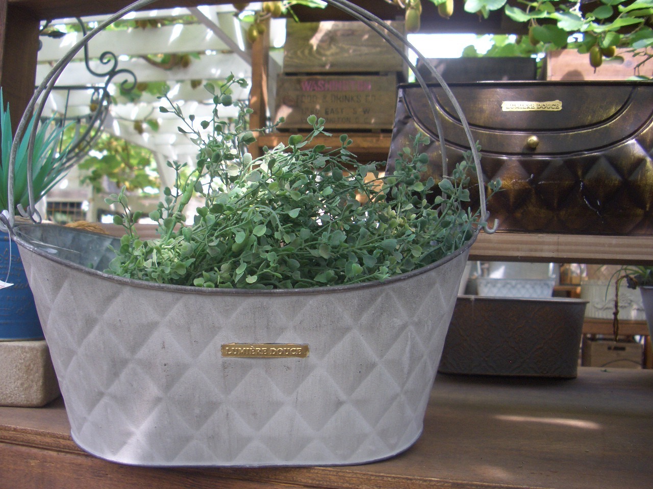 商品名:キルトバックプランター アンティーク ブリキプランター