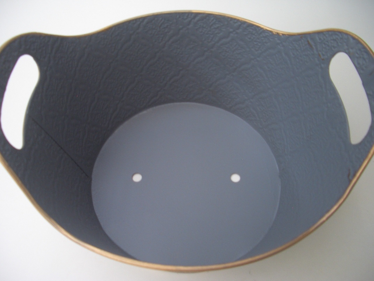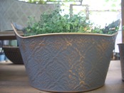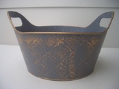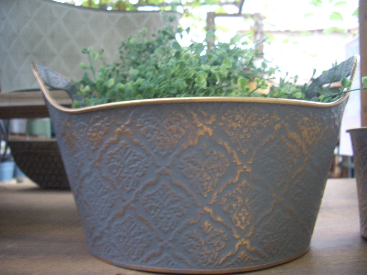 ダマスク柄のデザインが特徴的なブリキ鉢です。
