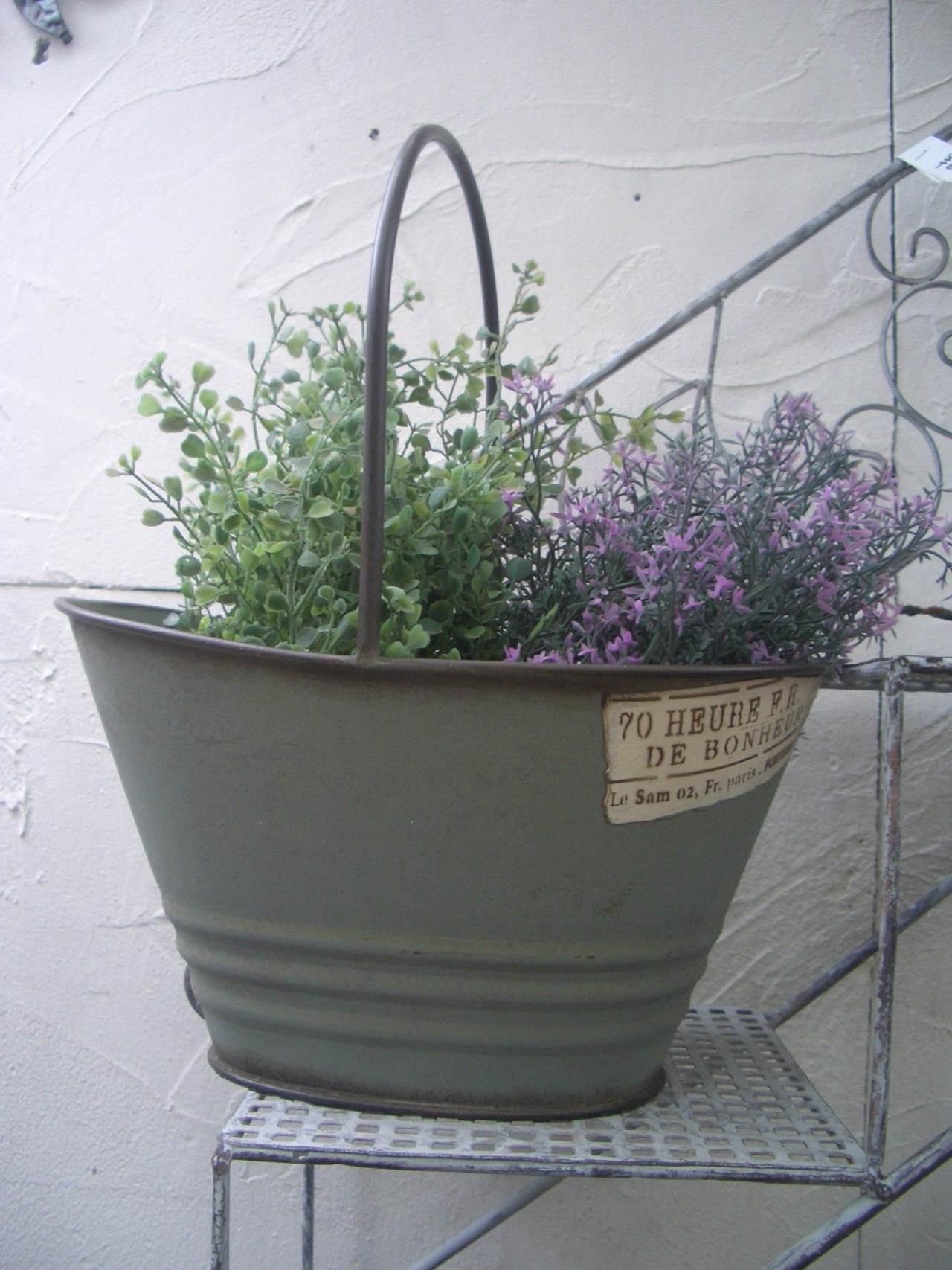 商品名:ウールバスケット ブリキプランター アンティーク