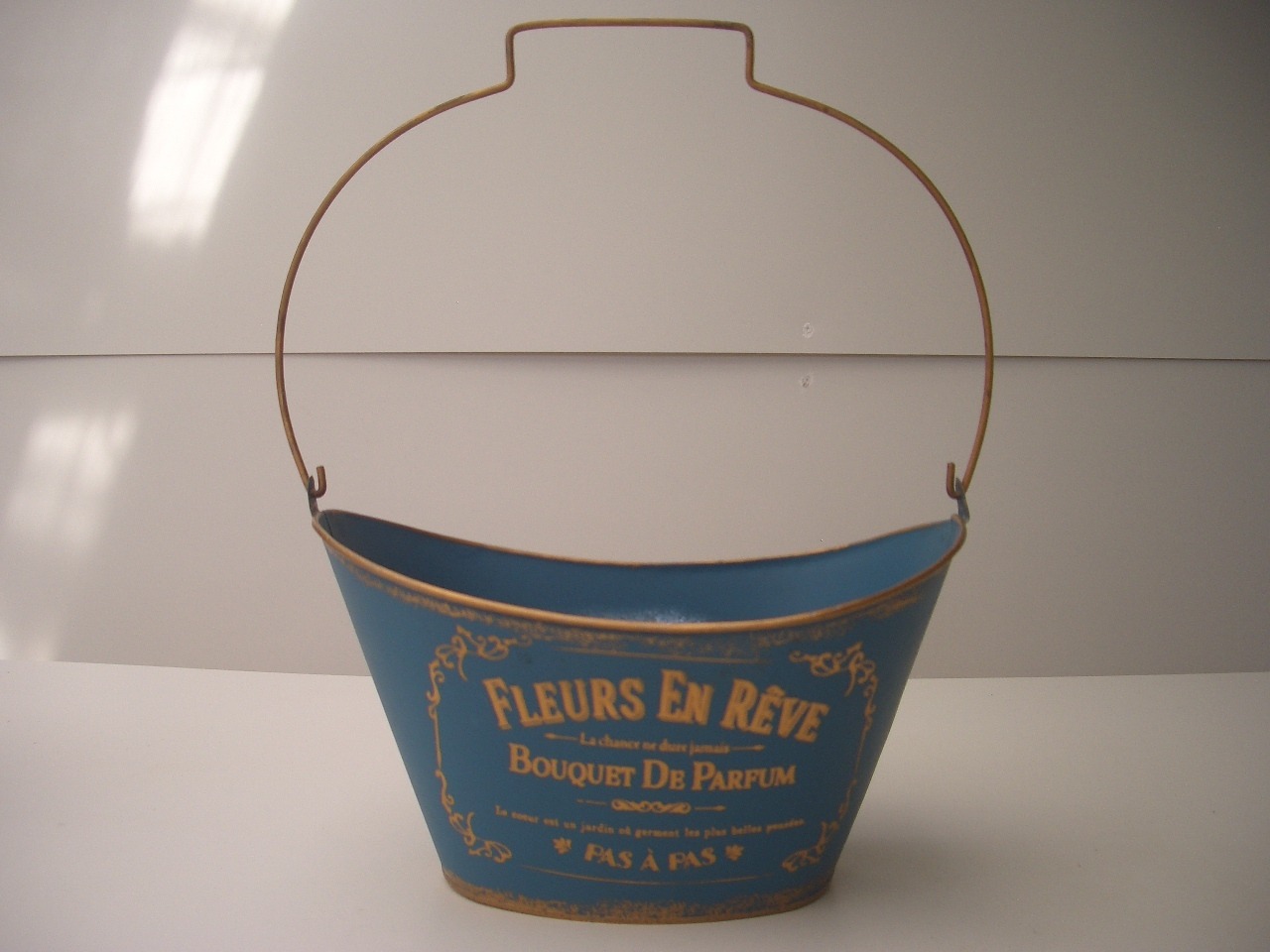 使い込んだアンティーク調の加工がされたブリキポットです。