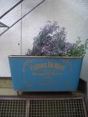 使い込んだアンティーク調の加工がされたブリキプランターです。