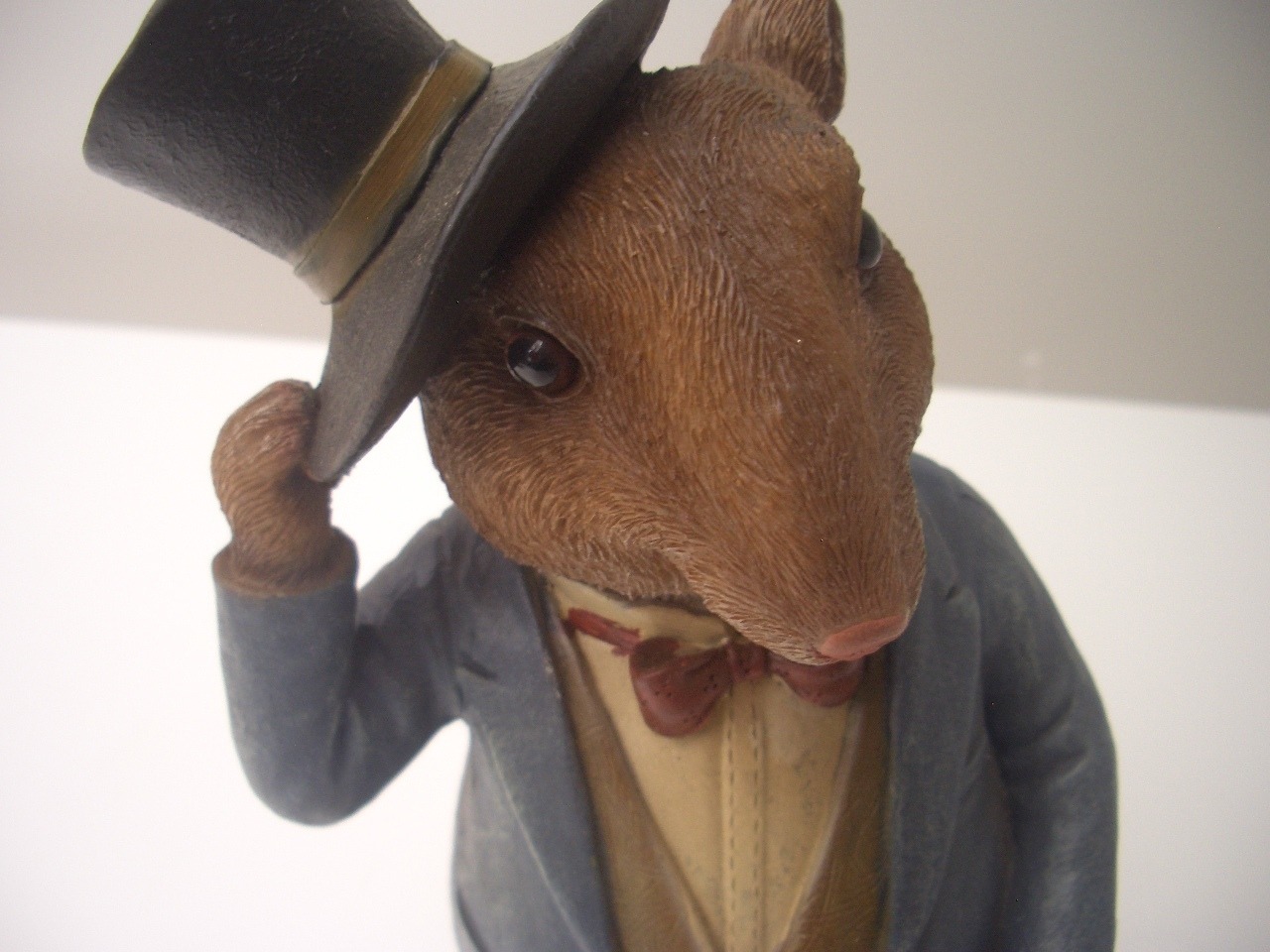 英国紳士のような、おめかしをしたジェントルマンなネズミの置物です。