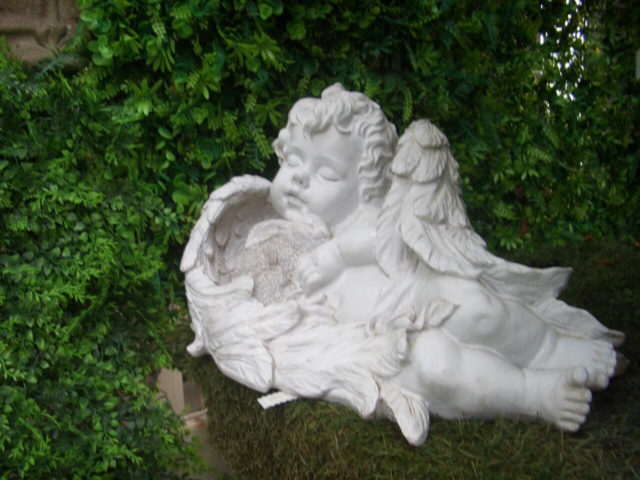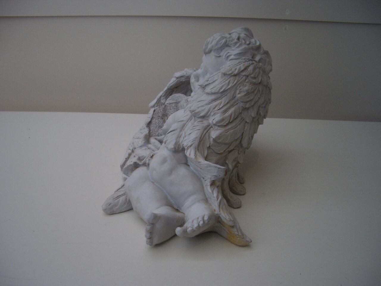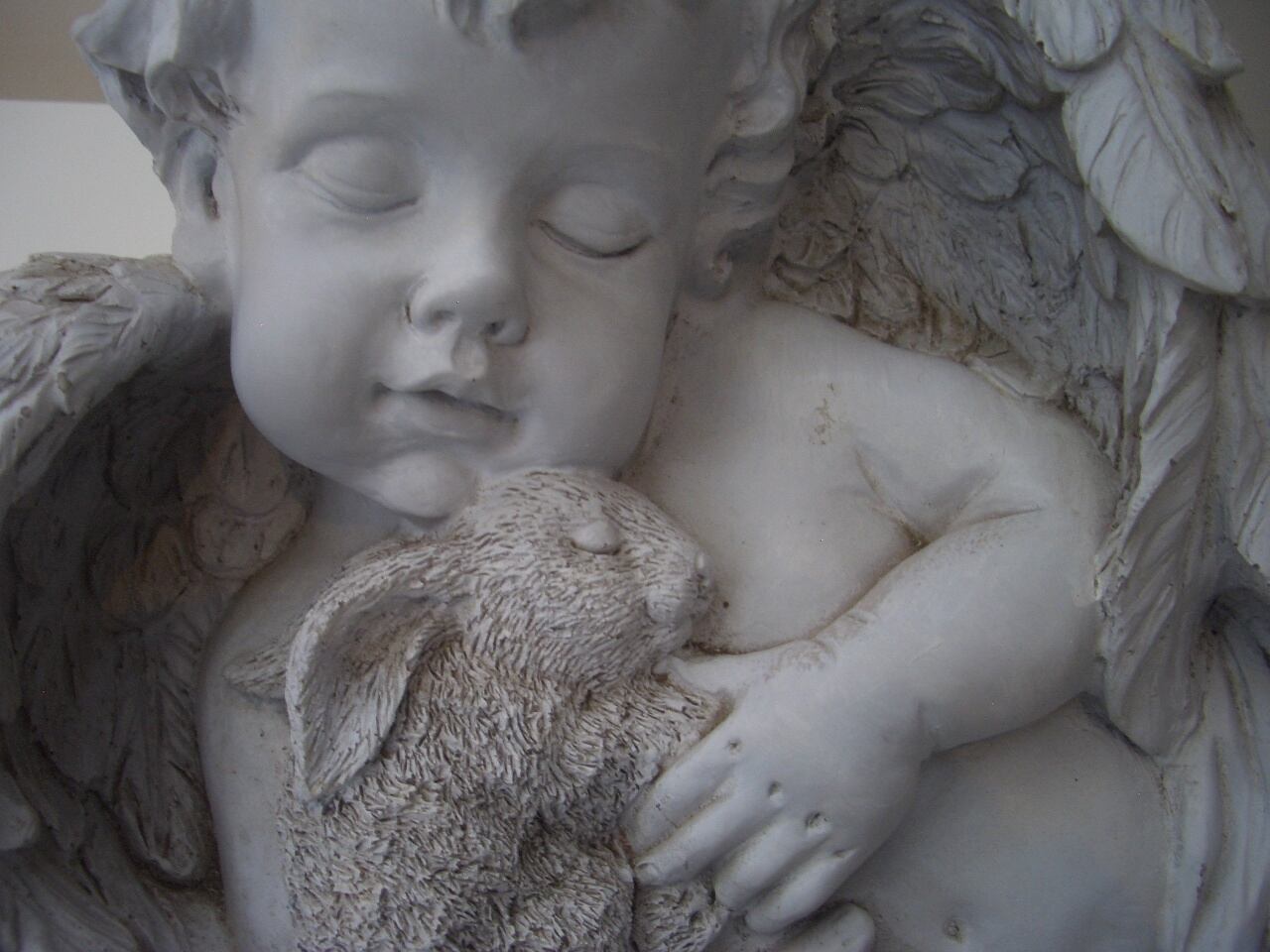 うさぎを抱いたかわいい天使の置物 / ガーデニングオブジェです。