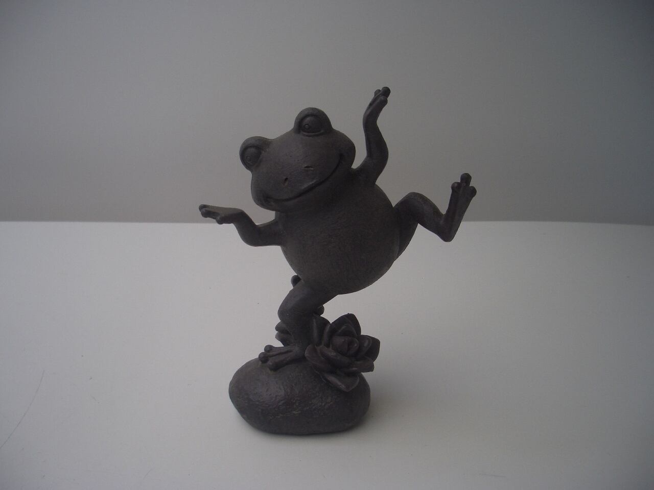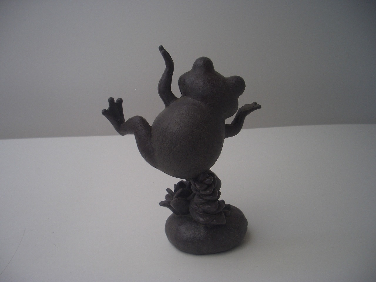 ダンスしているような姿がかわいいカエルの置物/ガーデニングオブジェです。