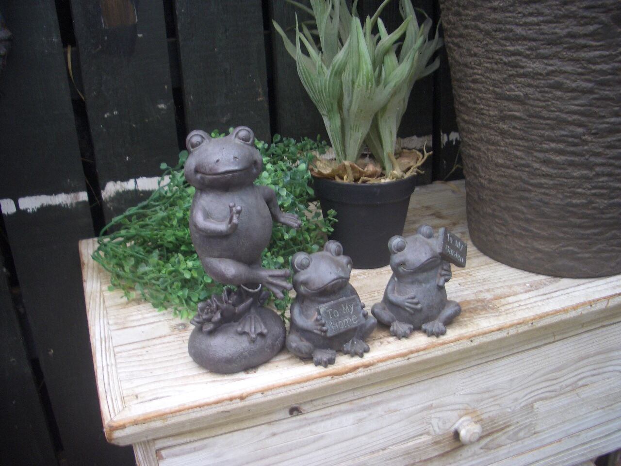 「To My Garden」というボードを持ったカエルの置物/ガーデニングオブジェです。