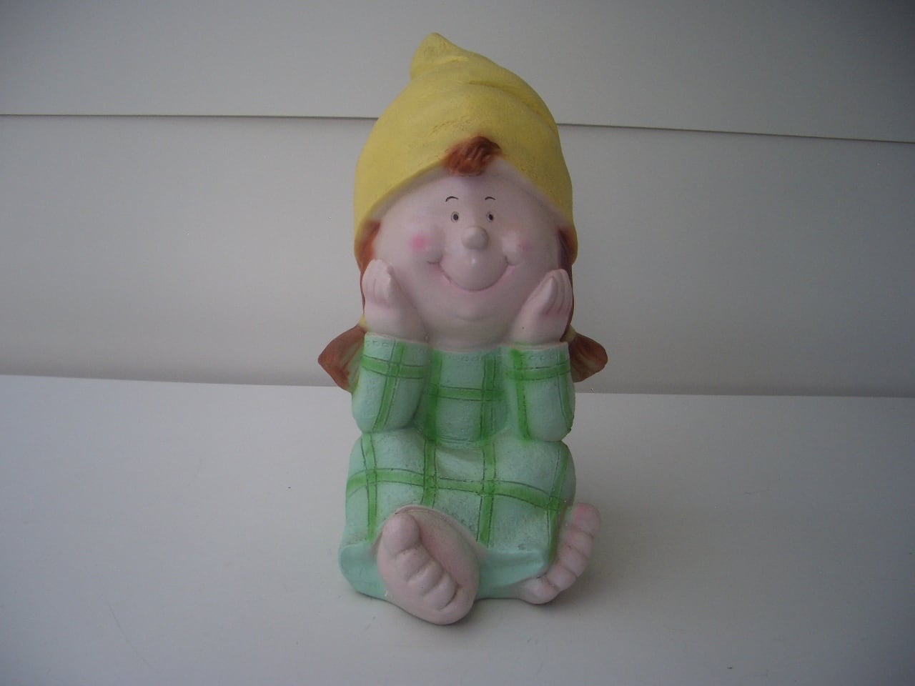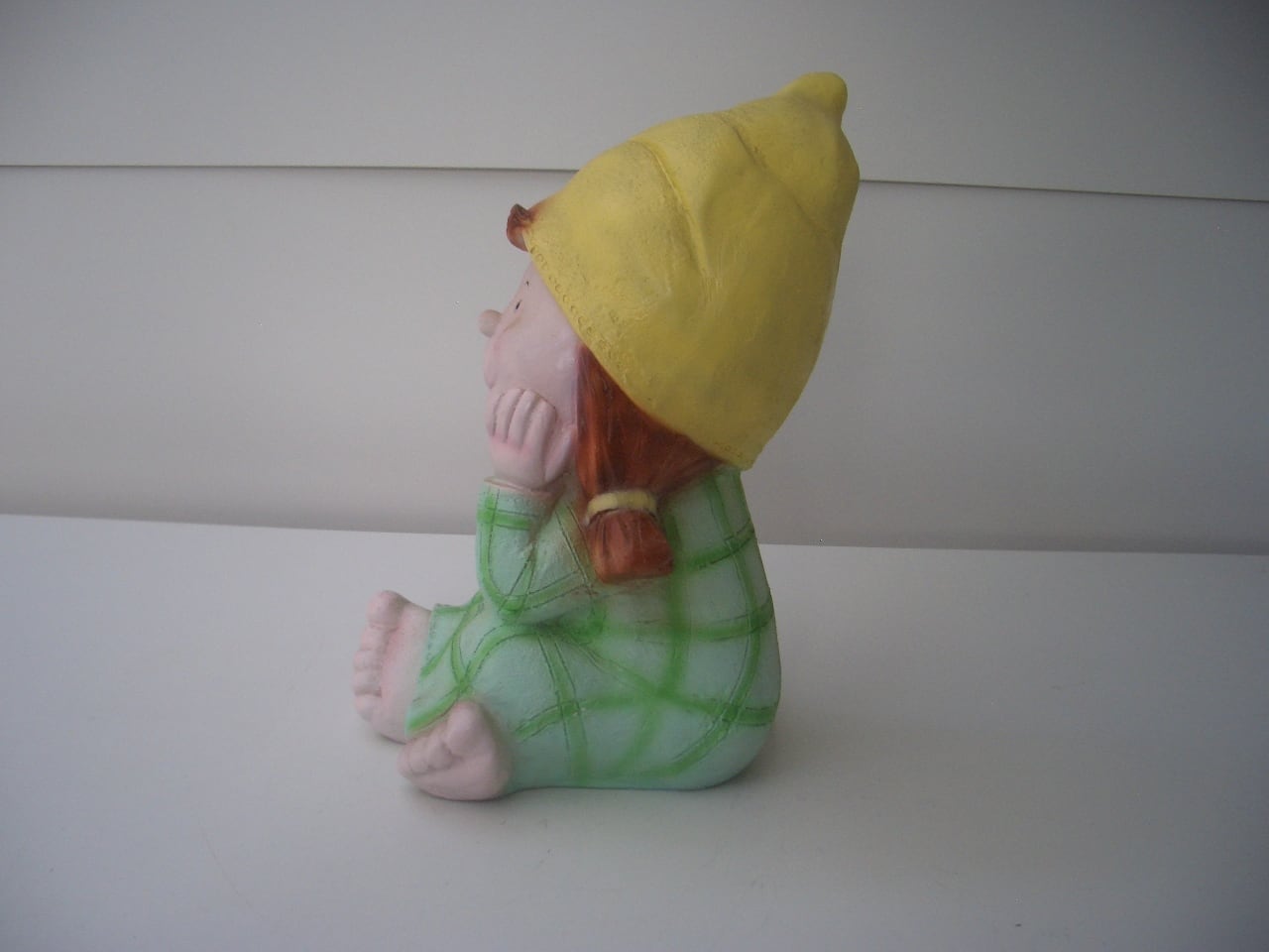 お座りして何か考えてるような、かわいい女の子の置物です。