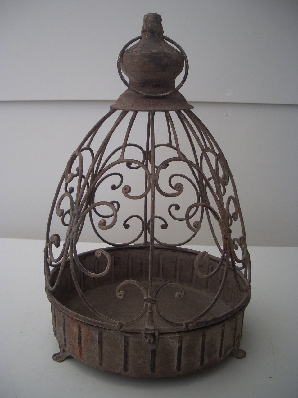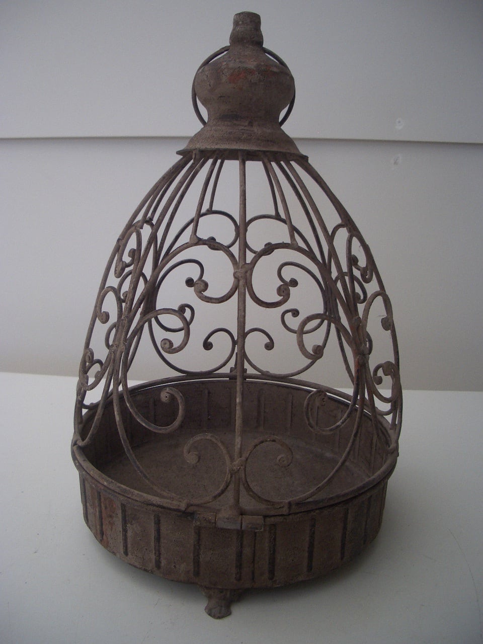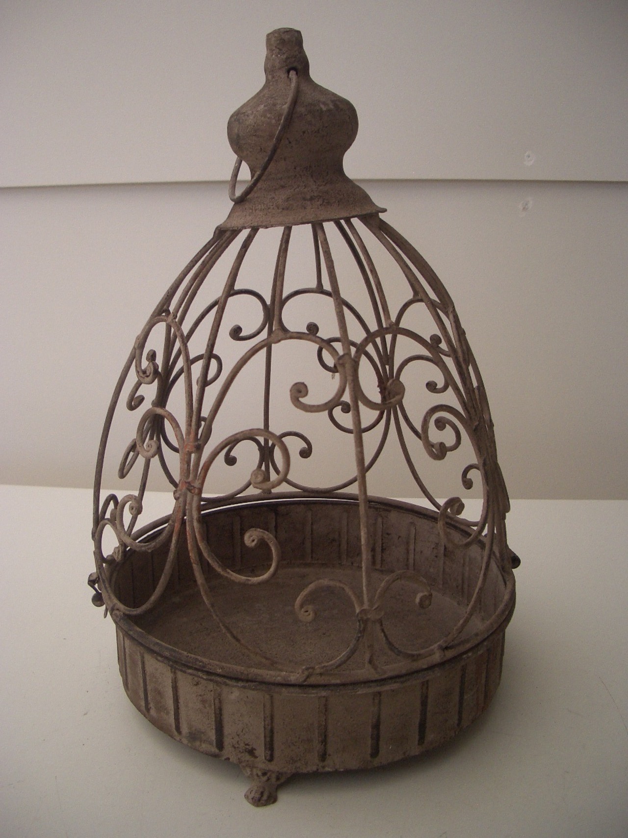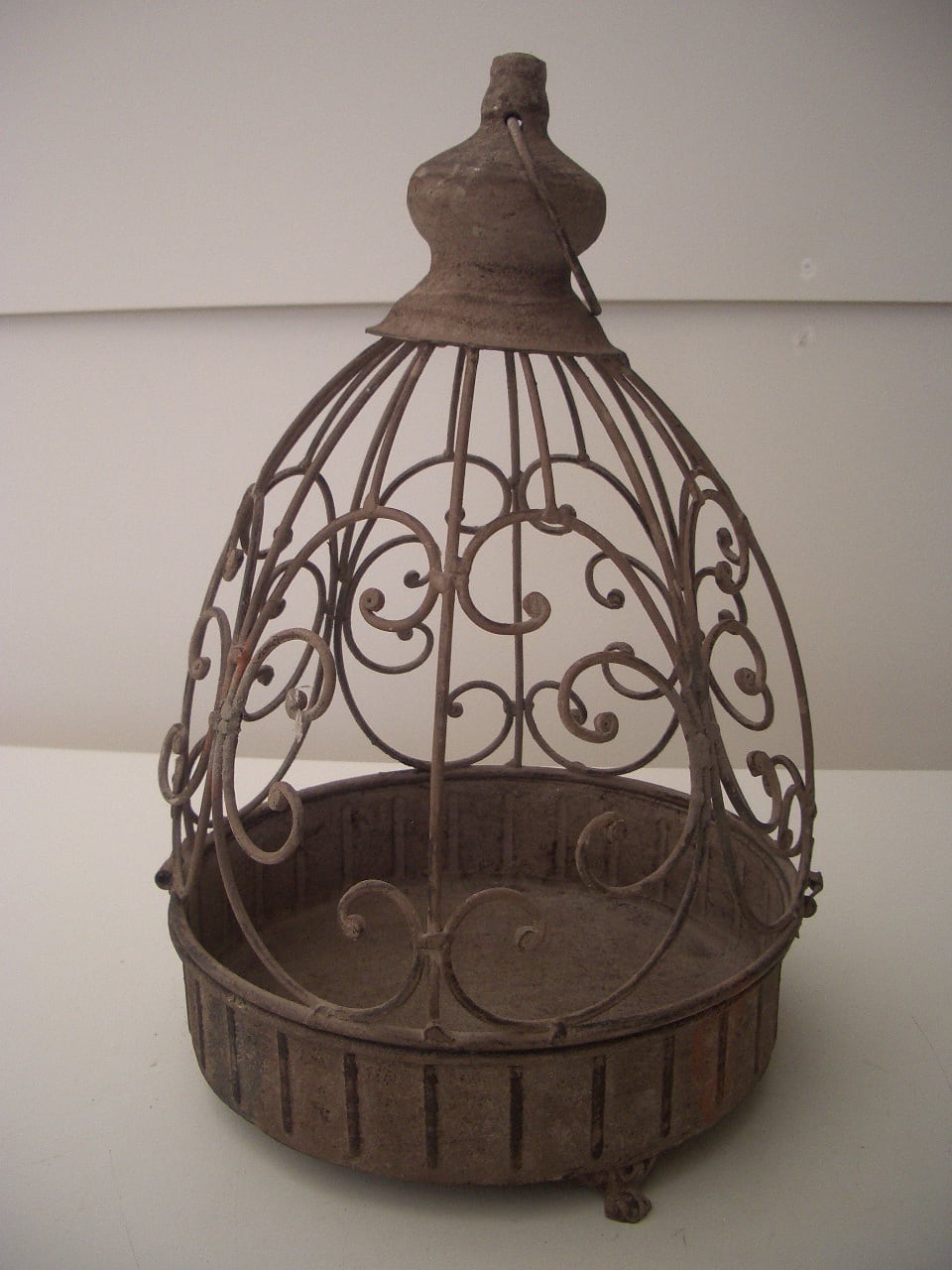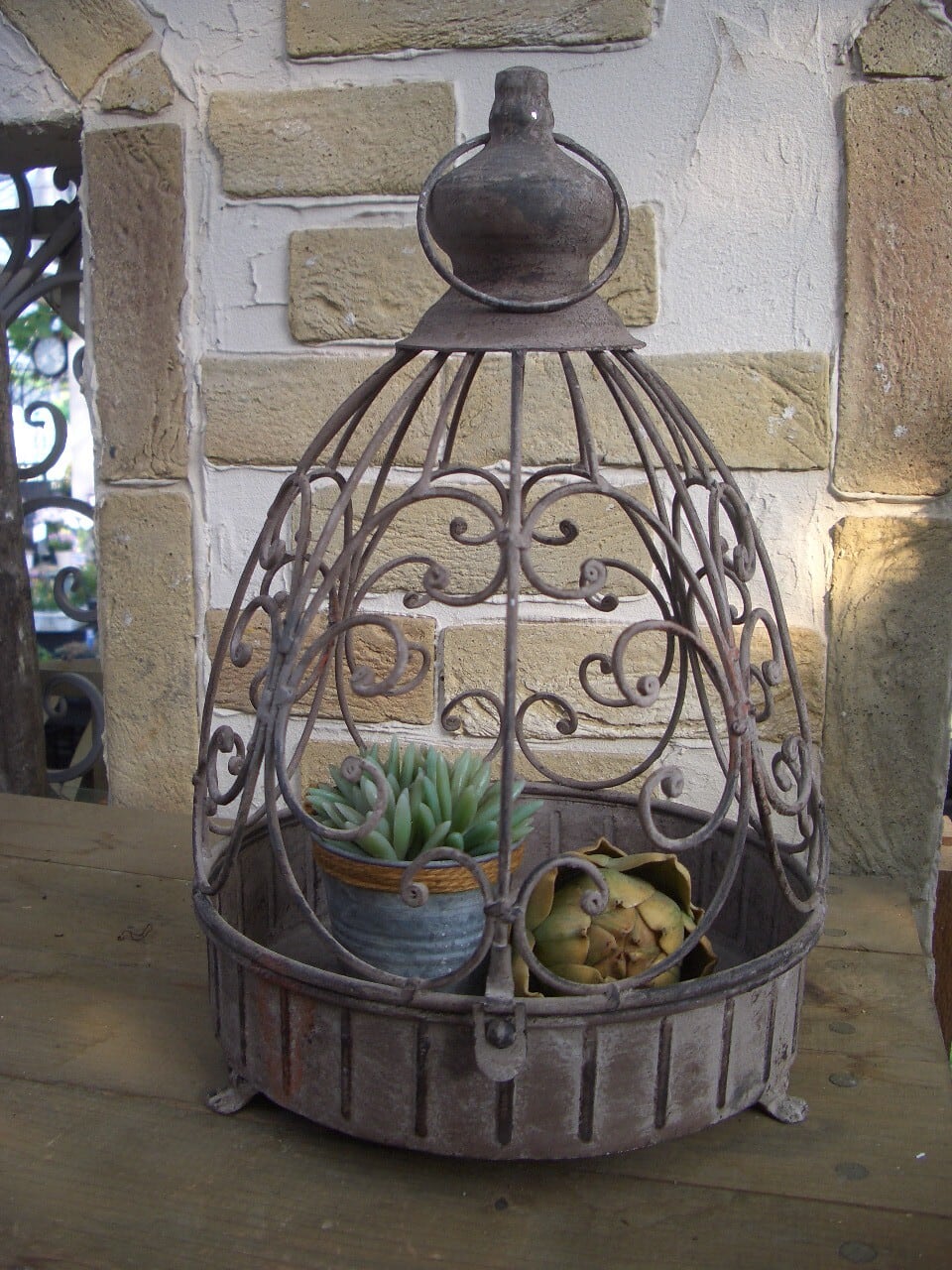 使い込んだアンティーク風合いがおしゃれなケージ風のプラントホルダーです。